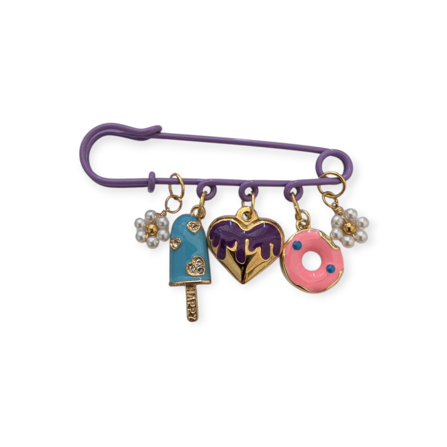 Charm pins are larger safety pins, and while the needlepoint is much duller than a standard safety pin, it's important that you handle with care. These pins are not suitable for young children, and shouldn't be pinned to clothing that sits directly on the skin.